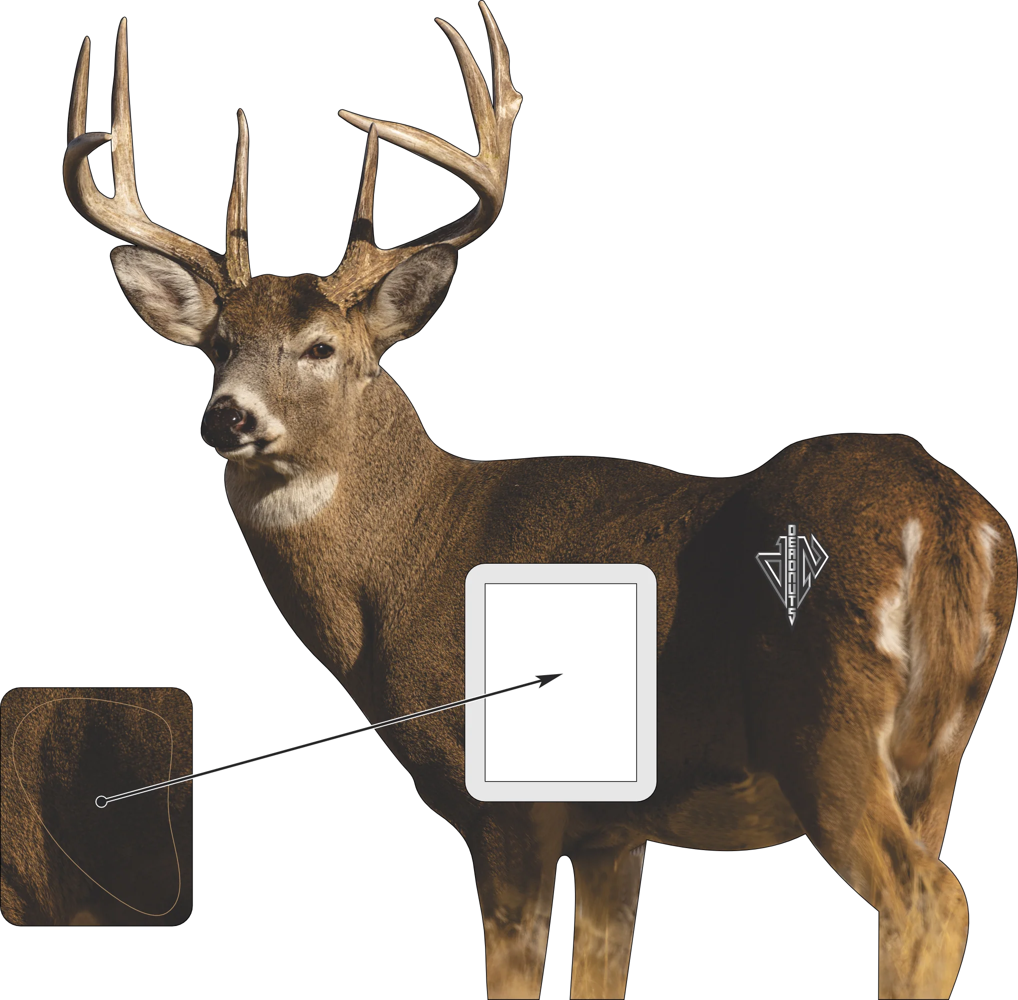 Deadnuts Targets are designed to be lifelike so that you can prepare for the shot of your life. All targets are measured from the top of the shoulder to the bottom of the brisket to provide you with the most accurate and precise vital area. The length of the target may not be as accurate to life size, however. Some species may be turned and angled slightly making them shorter in length. All angles, heights and depths have been carefully considered for accurate placement of vital areas on each species.